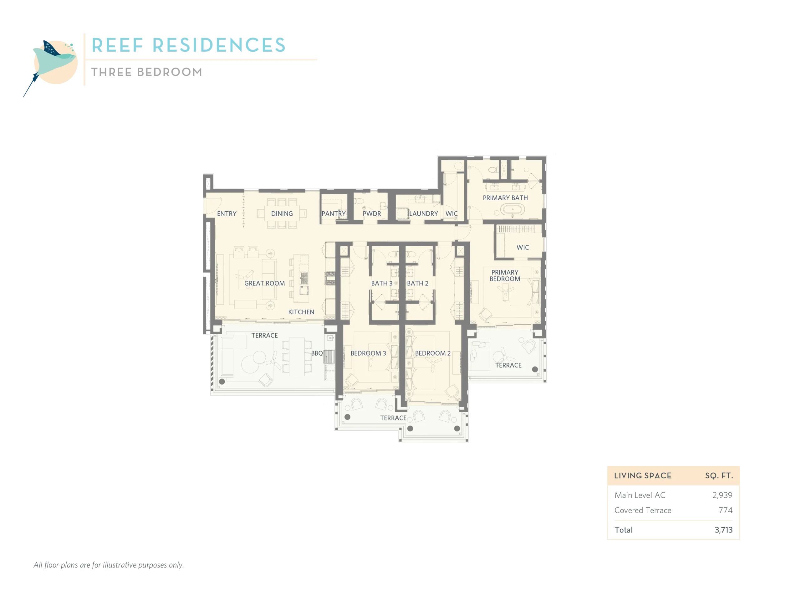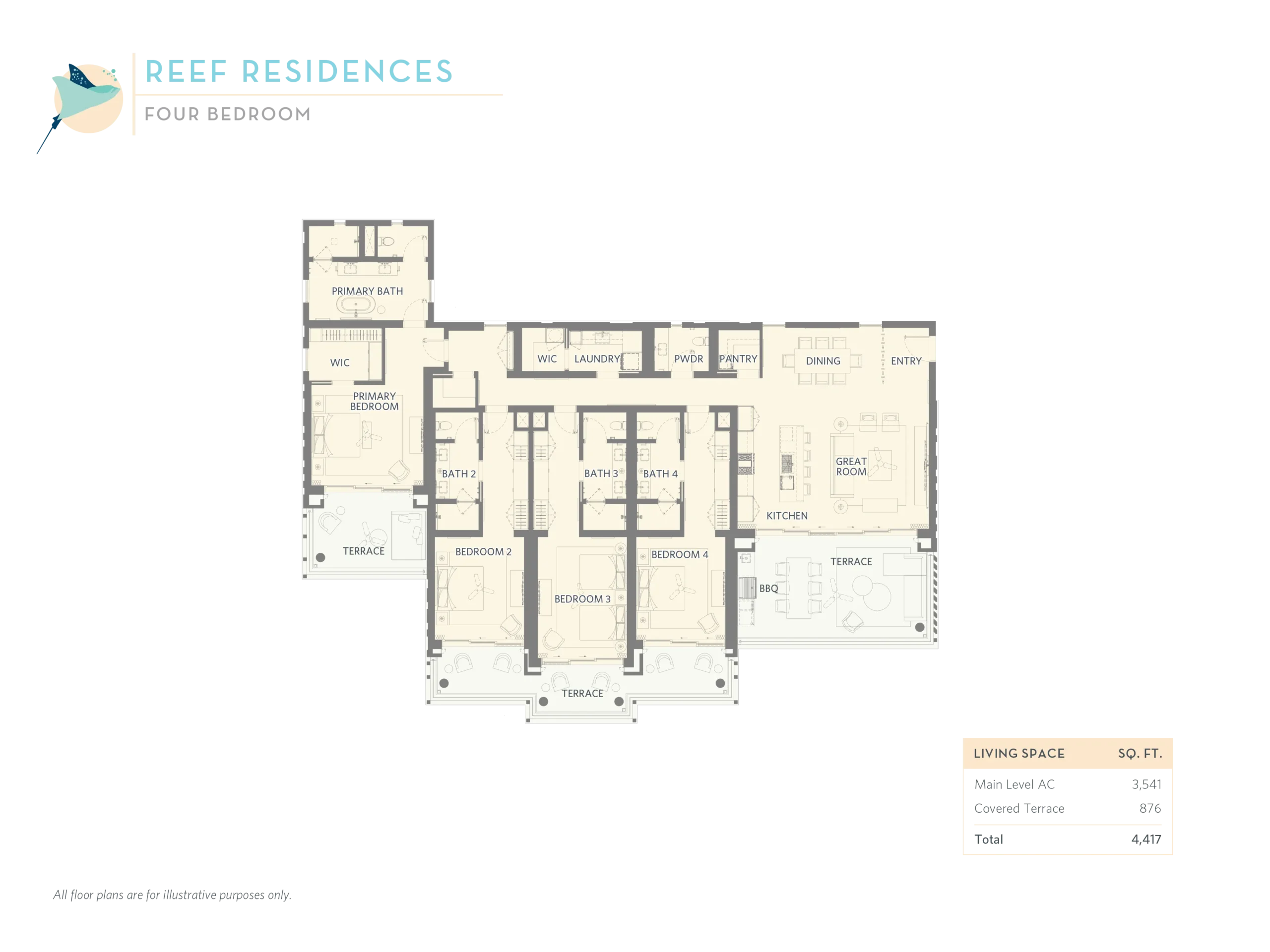 Tucked gracefully along the arc of our picturesque cove, the Reef Residences blur the line between the dramatic natural beauty outdoors and the simple elegance within. The inspired design of these spacious three- to four-bedroom residences is a true celebration of the Baja lifestyle. The residences are intentionally positioned along the cove to capture cooling sea breezes and enhance coastal and ocean views while providing maximum privacy and convenience for your family. From their sheltered location, all the charms of Cove Club are literally at your feet, making the Reef Residences ideal for sharing special moments with loved ones.